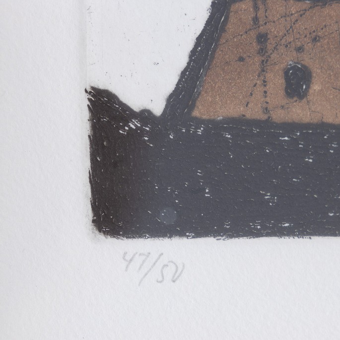 Signed etching in gold frame and passepartout with incorporated smaller frame. 47/50.