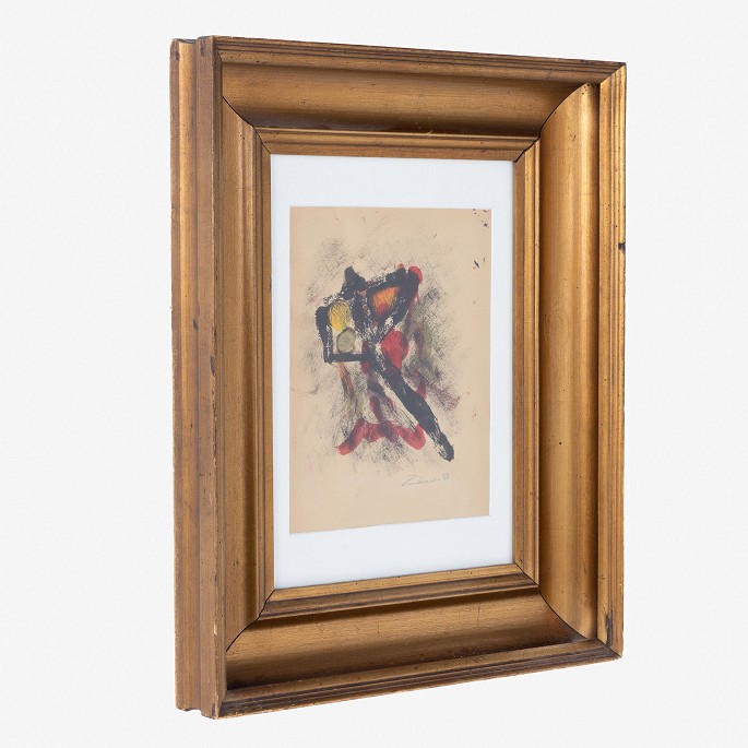 Signeret gouache i bred guldramme. Fra 1958.