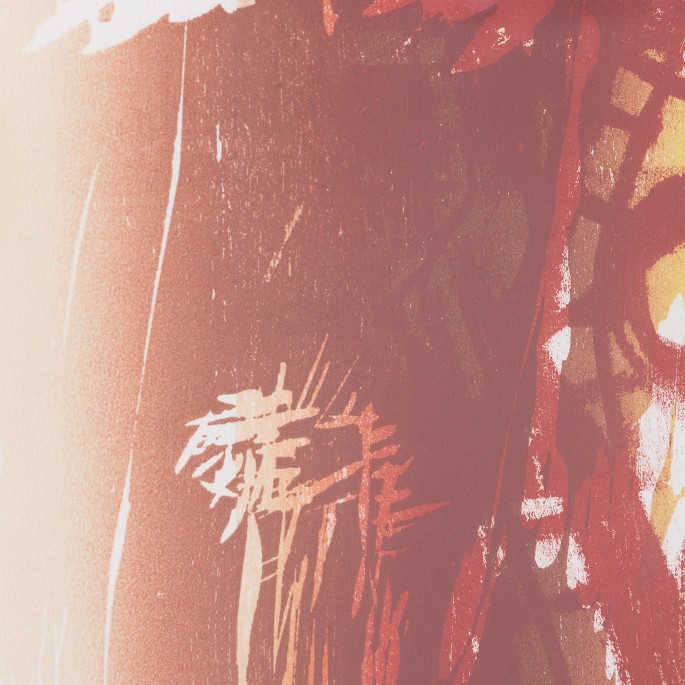 Træsnit i hvidlakeret ramme . 49/50. Fra 1993.