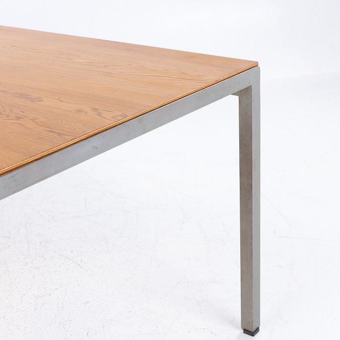 PK 53 - Professorbord, skrivebord, med stel i grålakeret vinkeljern og original fyrretræsplade.