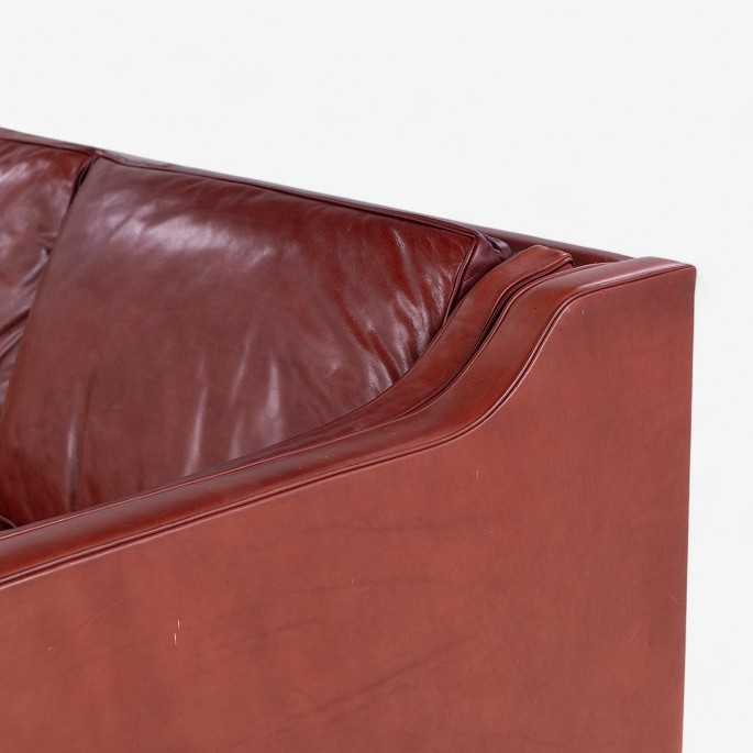 BM 2213 - 3 pers. sofa i patineret 'Elegance-læder' (farve: Indian Red) m. ben i teak.