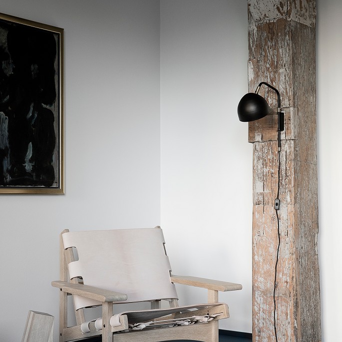 Studio - Væglampe i metal (hvid/nikkel).Studio-bordlampen fra Klassik Studio kombinerer et elegant formsprog med en varm, indbydende atmosfære. Den justerbare skærm lader dig rette lyset efter behov, mens den rå messing på indersiden tilfører et hyggeligt, gyldent skær. Fås i flere farver, så du nemt kan finde den variant, der passer til netop din stil.Lad Studio