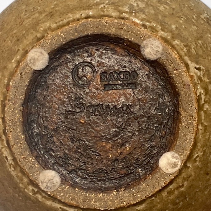 Stor kande i stentøj m. jordlige nuancer. Signeret og mærket fra producent.