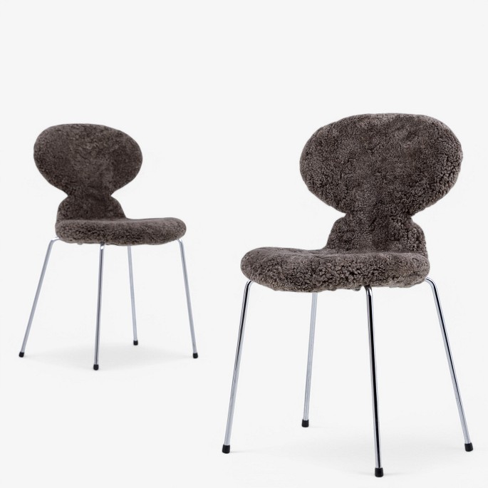 AJ 3100 - Fully upholstered 'The Ant' chair in lambskin (color: Sahara). Stamped by manufacturer.