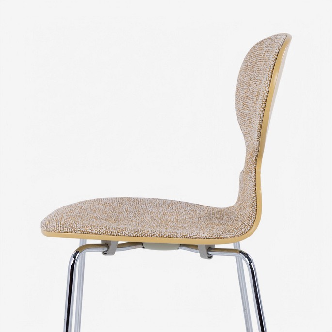 AJ 3100 - 'Ant chair' painted in 'RAL 1002' and front upholstered in 'Moss 021' fabric.