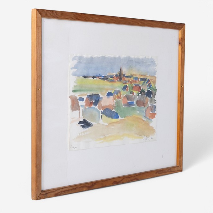 Watercolor painting with landscape motif in a wooden frame. From 1964. Signed by the artist.