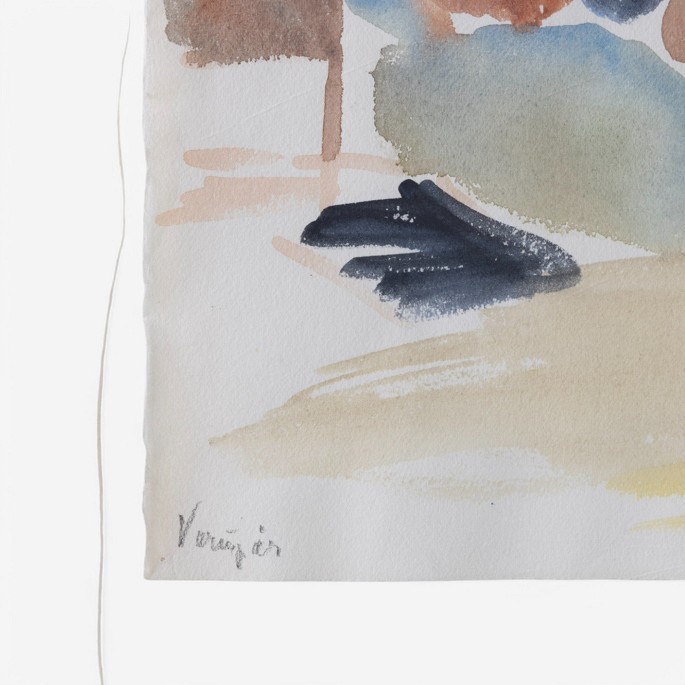 Watercolor painting with landscape motif in a wooden frame. From 1964. Signed by the artist.