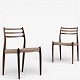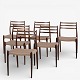 NO 78 - Set of 6 dining chairs in rosewood with paper yarn seats. Manufacturer's mark.