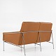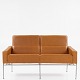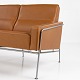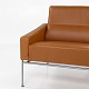 AJ 3302 - Nybetrukket 2 pers. sofa 'Lufthavnssofa' i cognacfarvet anilin-læder (Envy, Cognac fra Sørensen Læder) og stel af stål. KLASSIK tilbyder polstring af møblet med stof eller læder efter eget valg.