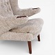AP 19 - Newly upholstered Teddy Bear chair in lambskin (color: Moonlight) with stool.