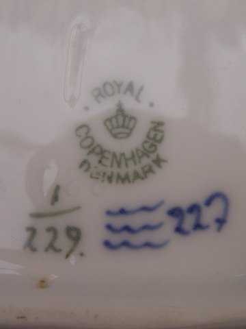 Nr.229 Musselmalet Riflet firkantet Skål H:3cm.13*13cm. Solgt