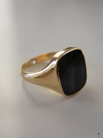 Herre Ring med sort sten/Onyx 585 guld stemplet K.T.A. Knud Thøger Andersen Åbyhøj D: 2,1 cm. 63/64 Emne nummer: 10968