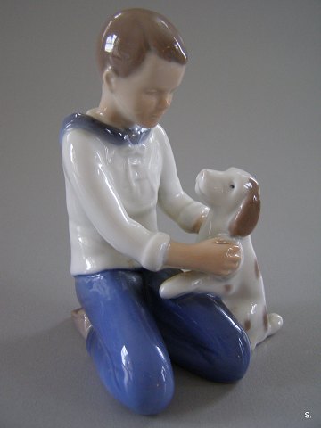 B&G 2334 Dreng med hund 1. sort. H: 13 cm. Emne nummer: 11350