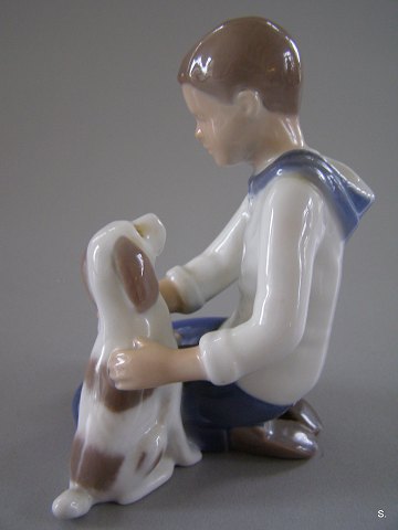 B&G 2334 Dreng med hund 1. sort. H: 13 cm. Emne nummer: 11350