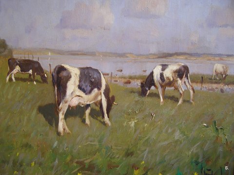 Landskab med græssende køer sign. G. Bundgaard 55*65 cm. med ramme 87*77 cm.