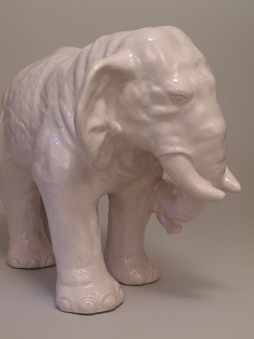 En stor hvid glaseret elefant af keramik sign. L. Hjorth h:32 l:44 Emne nummer: 10078k