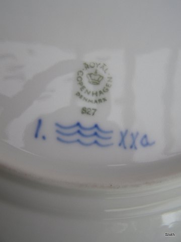 R.C. 627 Musselmalet Helblonde Middagstallerken 1. sort. D: 27,3 cm. Emne nummer: 12062