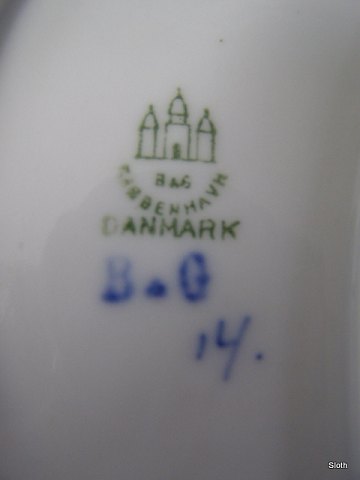 B&G. 14 Empire Halvmåneformet Sidetallerken 1. sort. L: 19,5 cm. B: 11,5 cm. Emne nummer: 17090