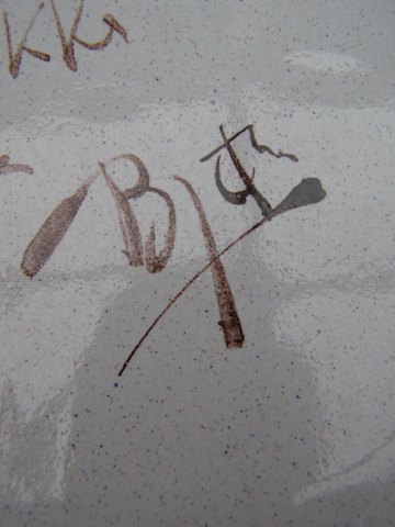 Bjørn Wiinblad, 1918-2006, Et oval fad med flettet kant, sign. Bjørn Wiinblad 15-08-1956, h:6,5 l:32 b:25,5cm. Emne nummer: 10514