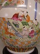Et par store bordlamper på stand af træ, bemalet med figurer, H: 58cm. der er desværre en brændingsfejl som det fremgår af billeder Emne nummer: 10525