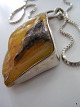 Stort Ravsmykke i rustik sølv kæde 925/Lund L: 80cm. Emne nummer: 11132