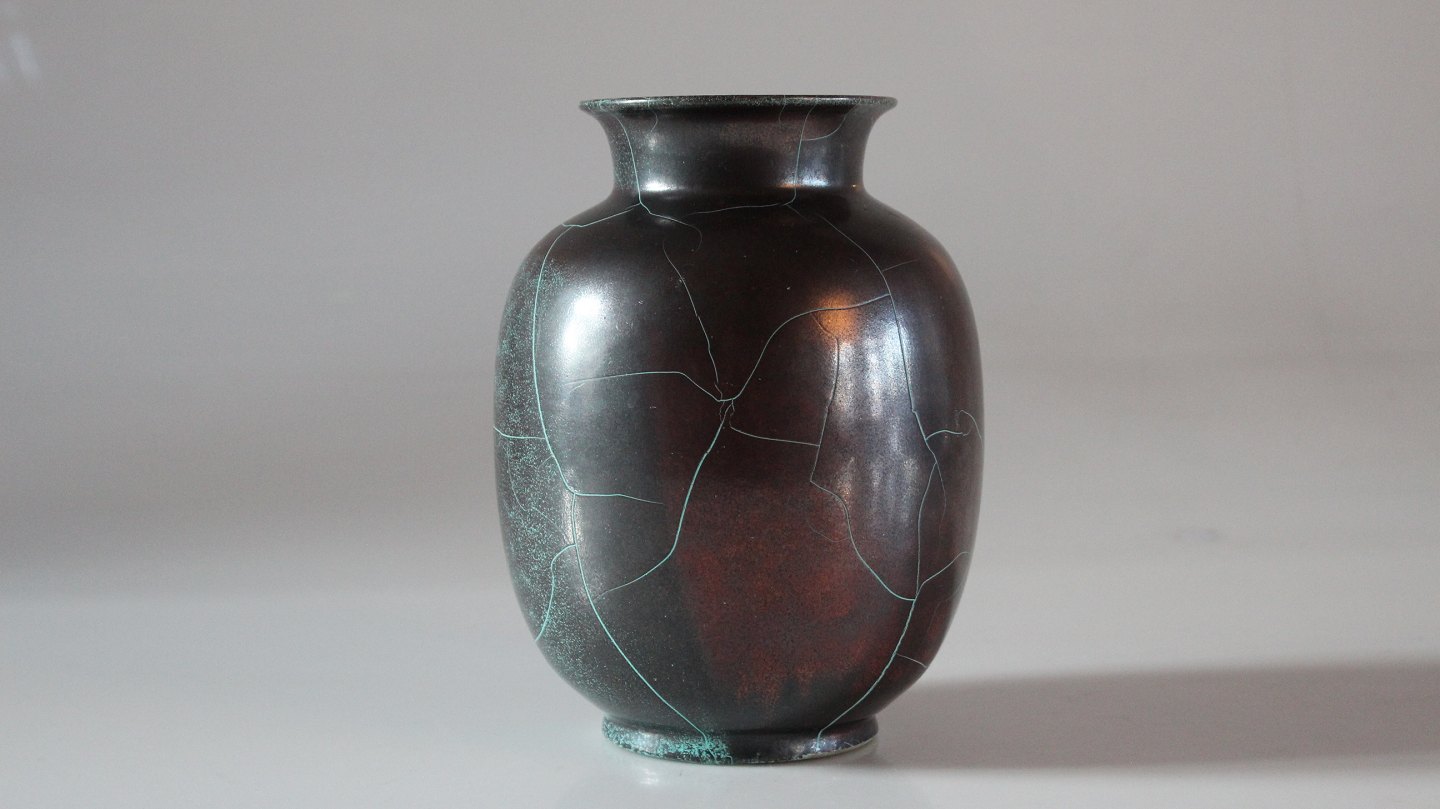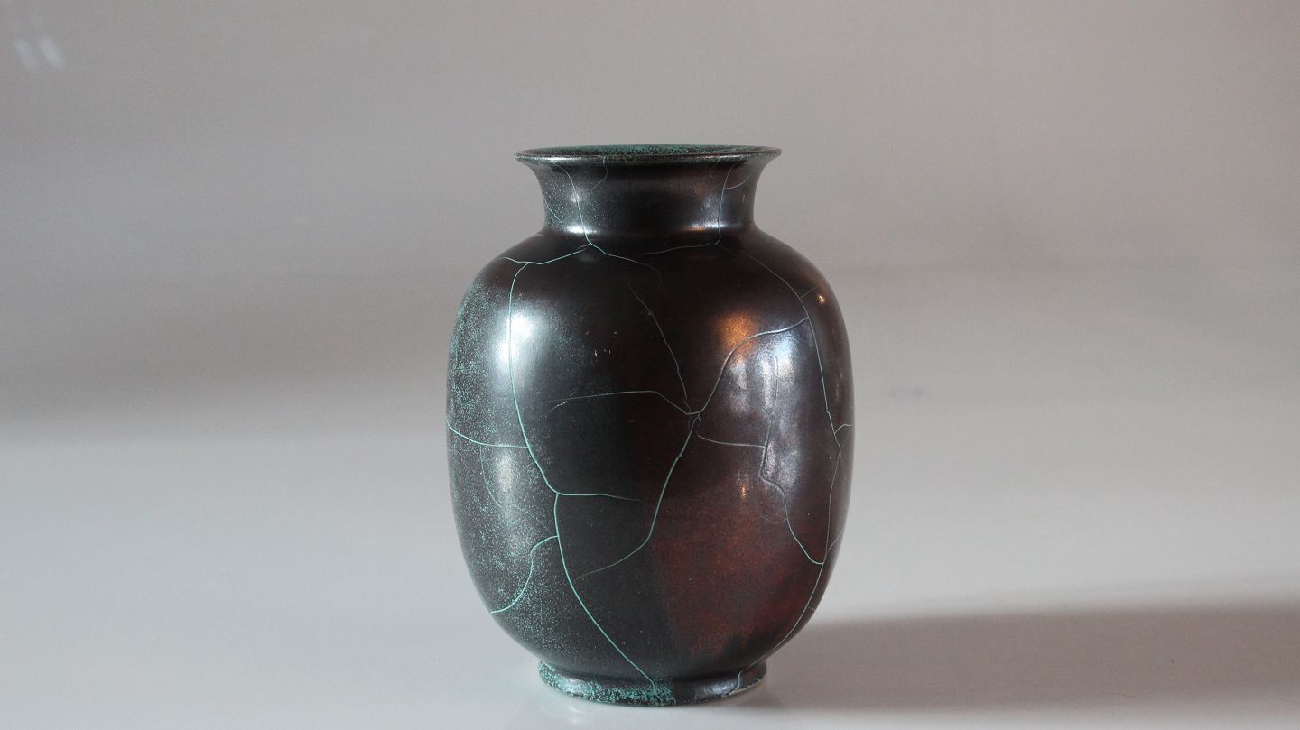 Richard Uhlemeyer (1900-1954) Ceramic vase with crackled glaze in reddish brown and turquoise shades Diameter 15 cm Height 20.5 cm Very nice condition - no chips, cracks or repair