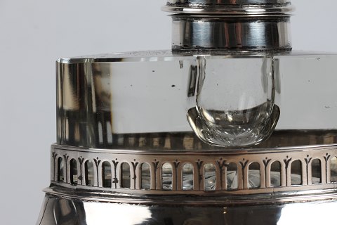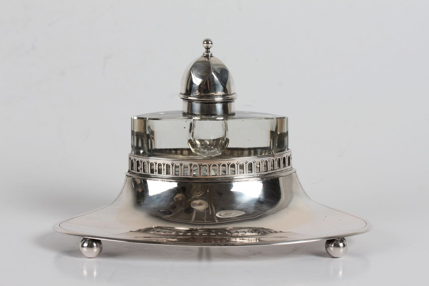 Gammel skrivesæt fremstillet af ægte sølv med glas blækhus og låg Længde 17,5 cm Fin stand
