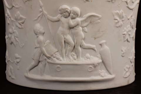 Bing & Grøndahl Vinkøler nr. 6112 af hvid biscuit Dekoreret med Bacchus, amoriner og putti efter Bertel Thorvaldsen Diameter 23 cm - højde 15,5 cm Fin fejlfri 1. sortering