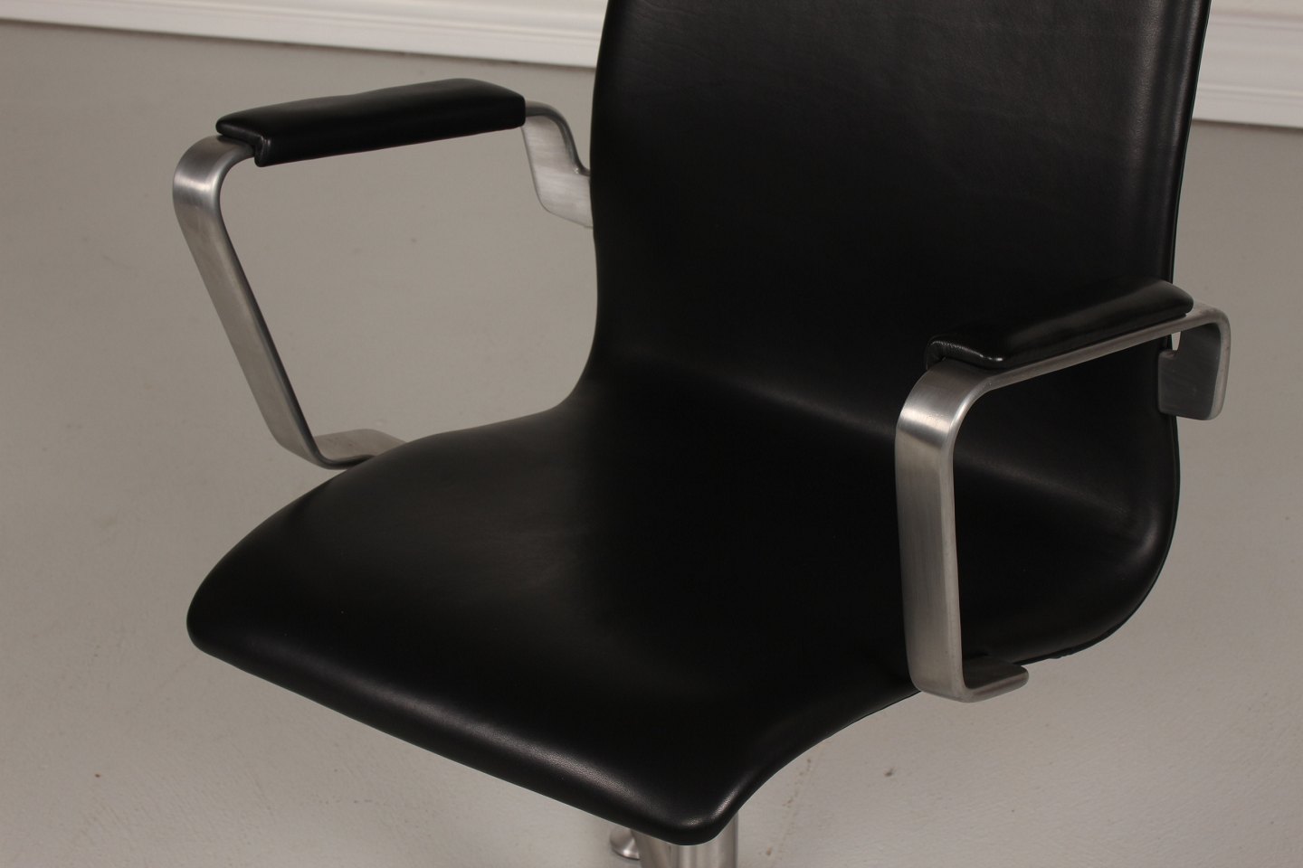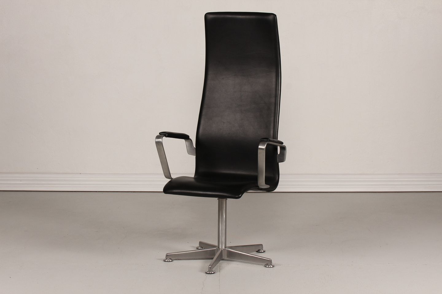 Arne Jacobsen (1902-1971) Oxford Chair no 3272 Highbacked lounge armchair with new black aniline leather Manufactorer: Fritz Hansen A/S Height 126 cm Width 60 cm Depth 57 cm Mint condition - new renovated