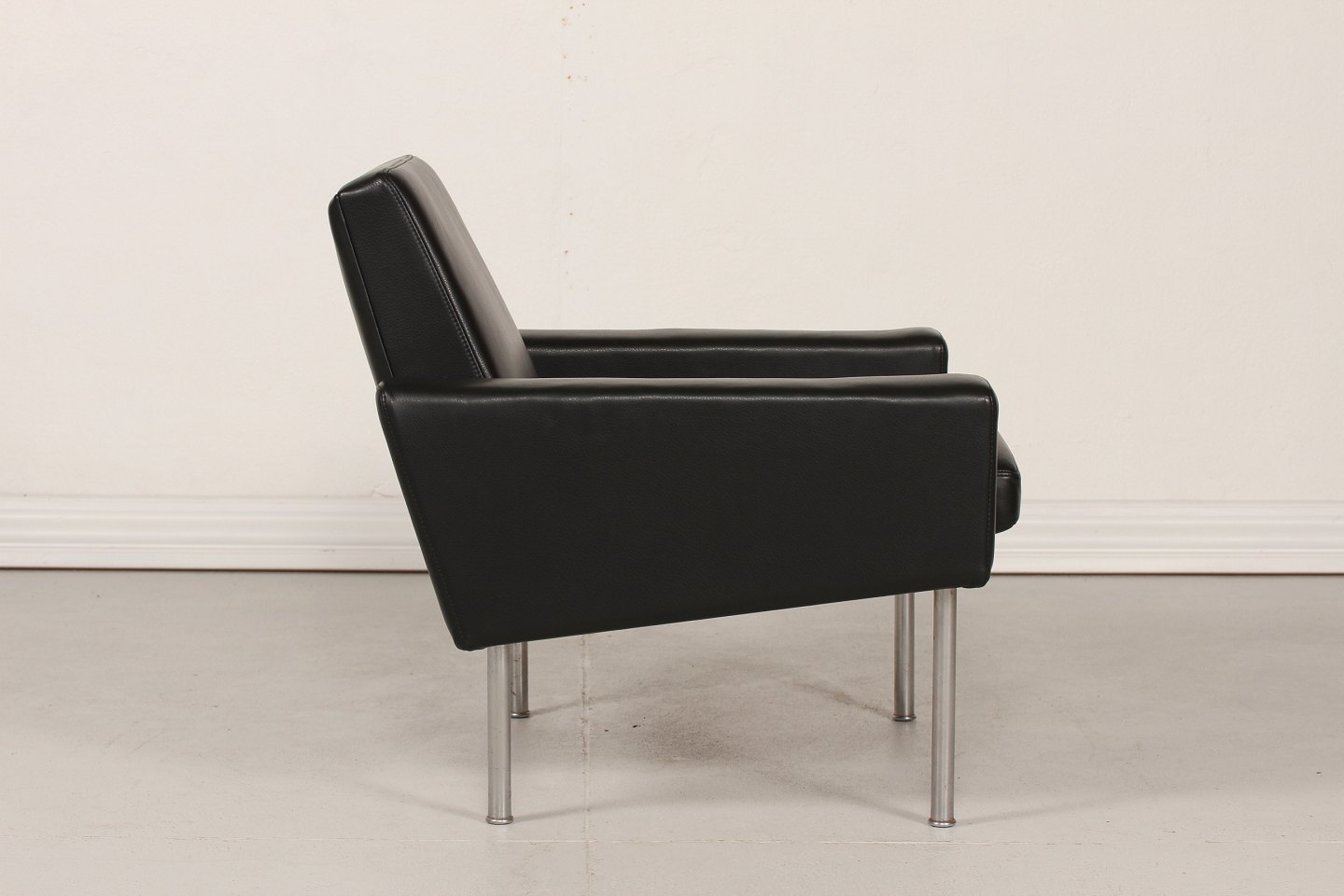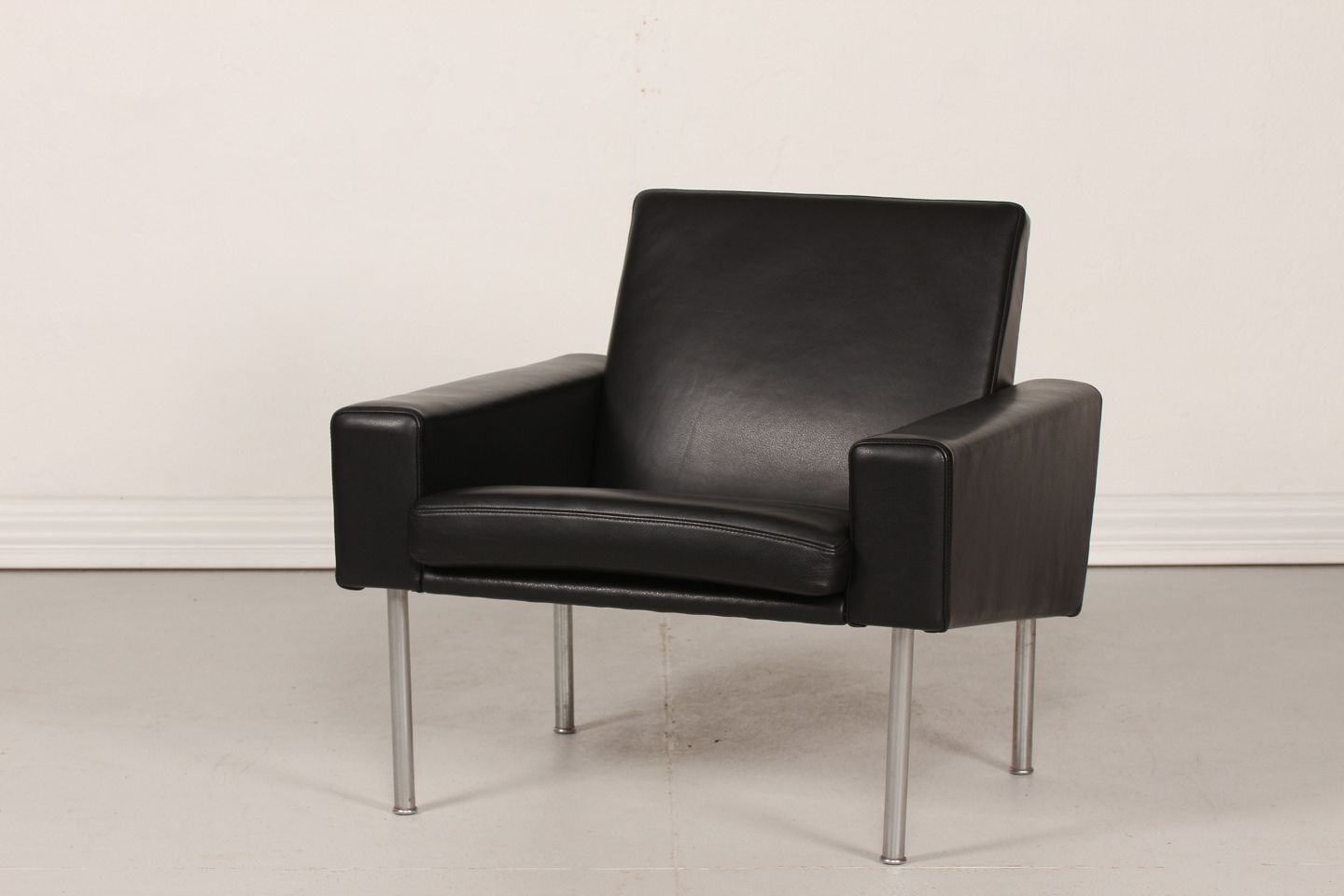 Hans J. Wegner (1914-2007) Chair model AP 34 with steel Legs New renovated with new black Leather Manufactor: AP Stolen Height 70 cm Width 77 cm Depth 77 cm Very good condition
