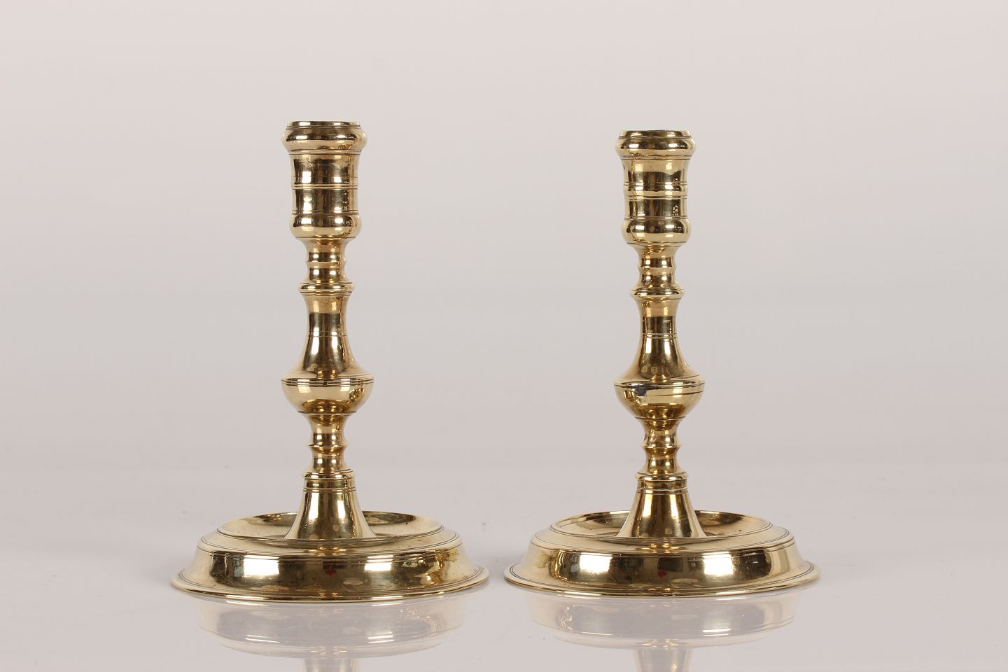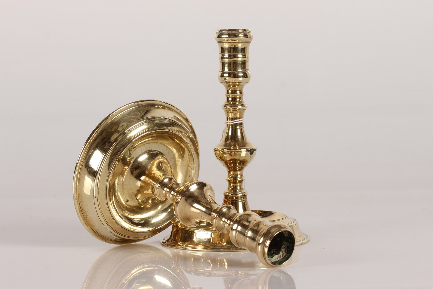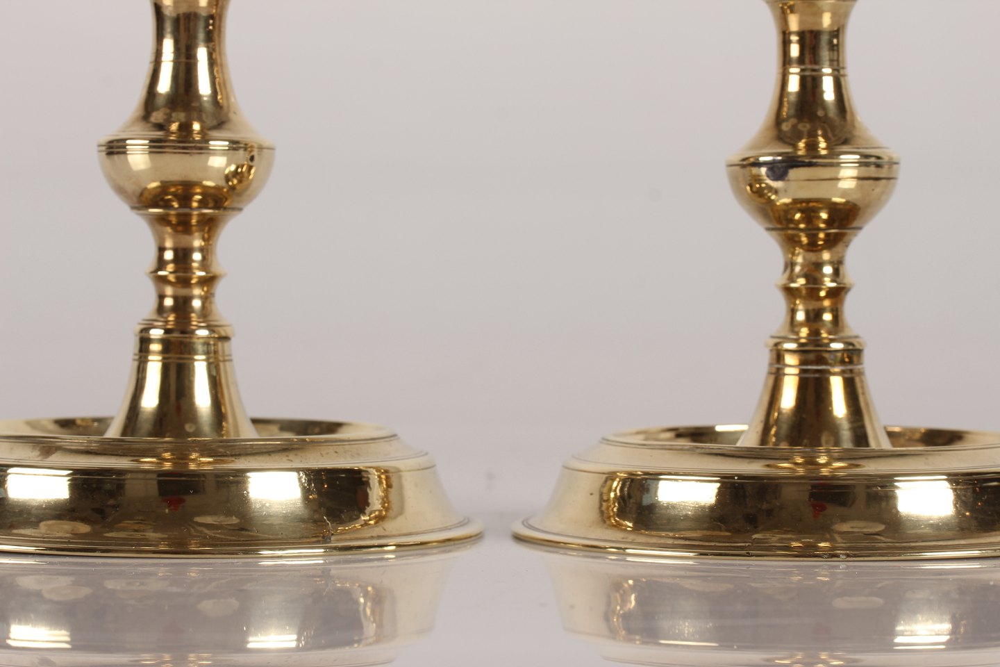 Par Næstved lysestager af messing fra midten af det 19 århundrede Højde 16,5 cm - diameter 11,3 cm Fin stand med gammel reparation