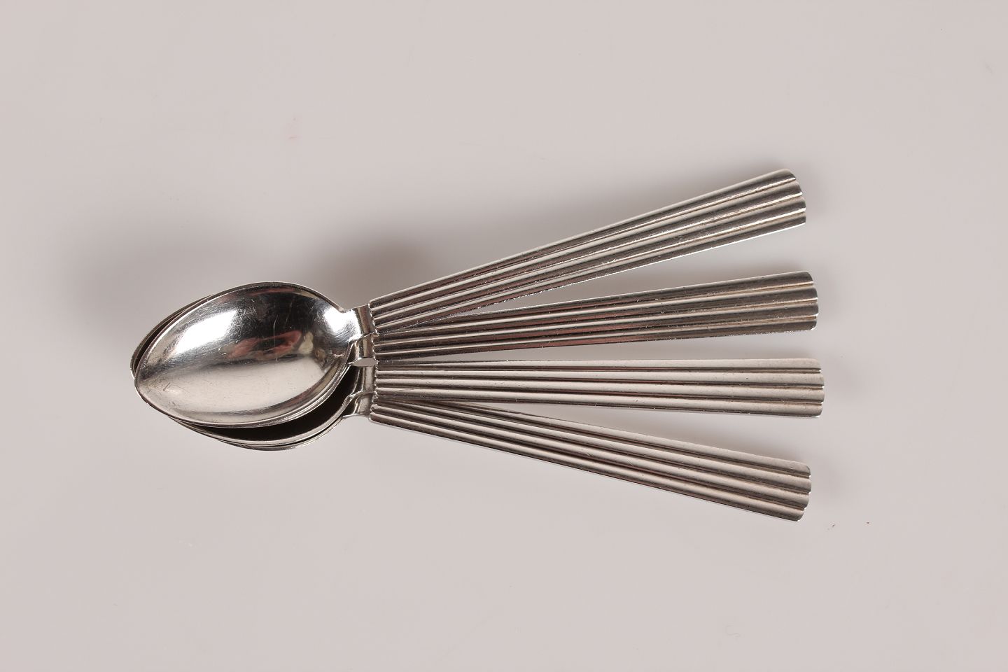 Georg Jensen Sølvsmedie Bernadotte bestik af sterling sølv tegnet af Sigvard Bernadotte i 1939 Theskeer Længde 12,5 cm Med stempel fra perioden efter 1945 Fin stand