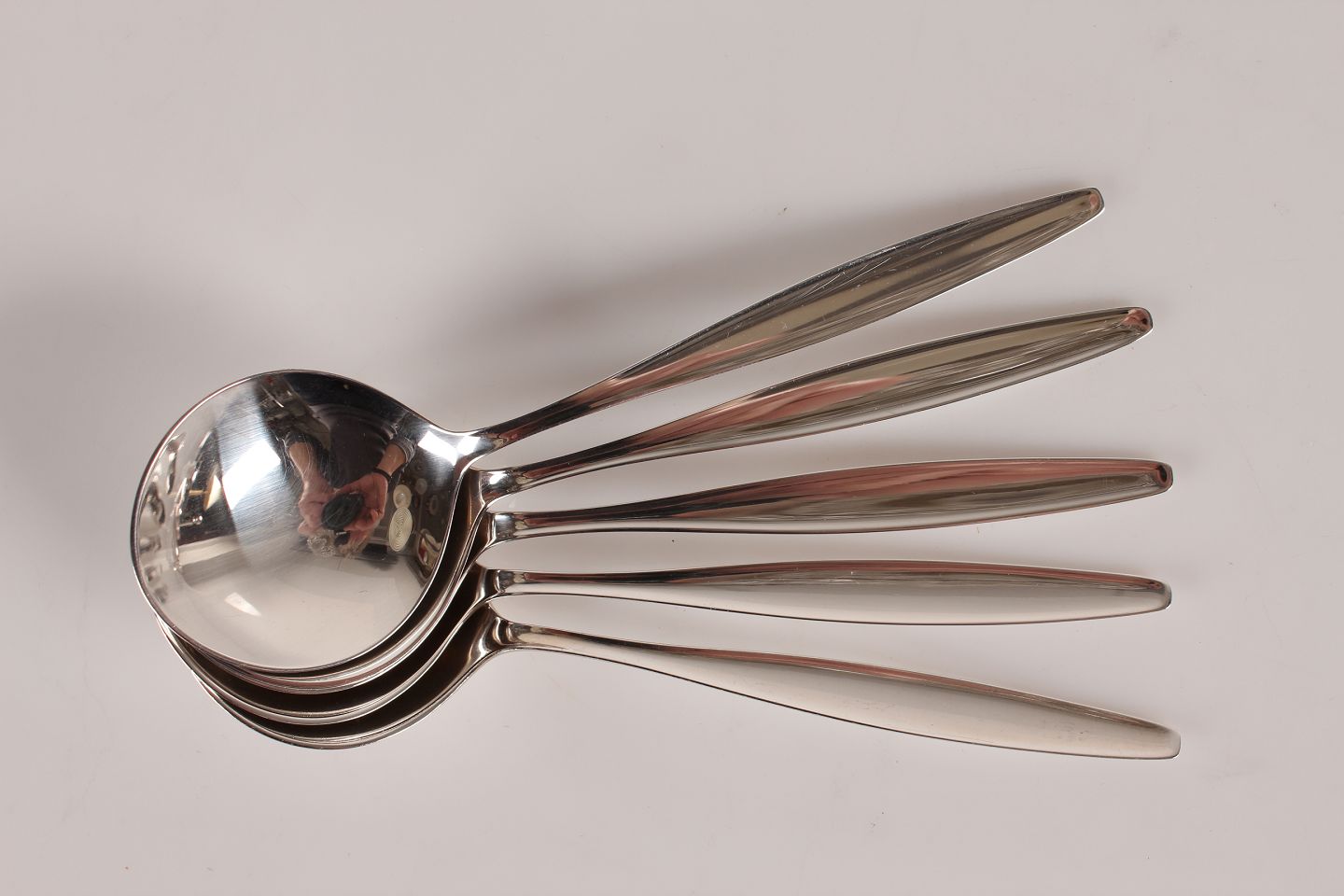 Georg Jensen Silver Cypres cutlery made of sterling silver after design by Tias Eckhoff in 1952 Bouillon Spoons Length 14,5 cm Nice vintage condition
