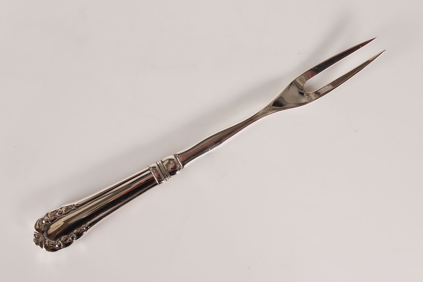 Georg Jensen Sølvsmedie Liljekonval bestik af 830 sølv tegnet af Georg Jensen i 1913 Stor stegegaffel med stempel fra 1924 Længde 24,5 cm Rigtig fin stand