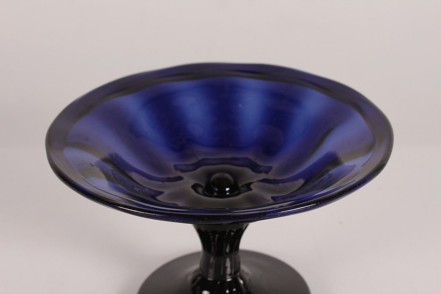 Old sugar or candy bowl Made of dark blue glass with folded edge Holmegaard from the middle of the 20th century Height 8.8 cm - diameter 14 cm Nice vintage condition