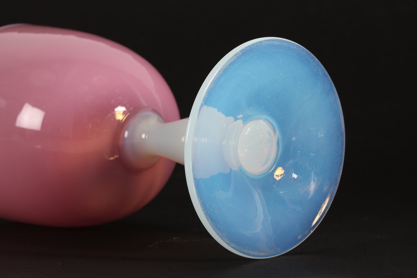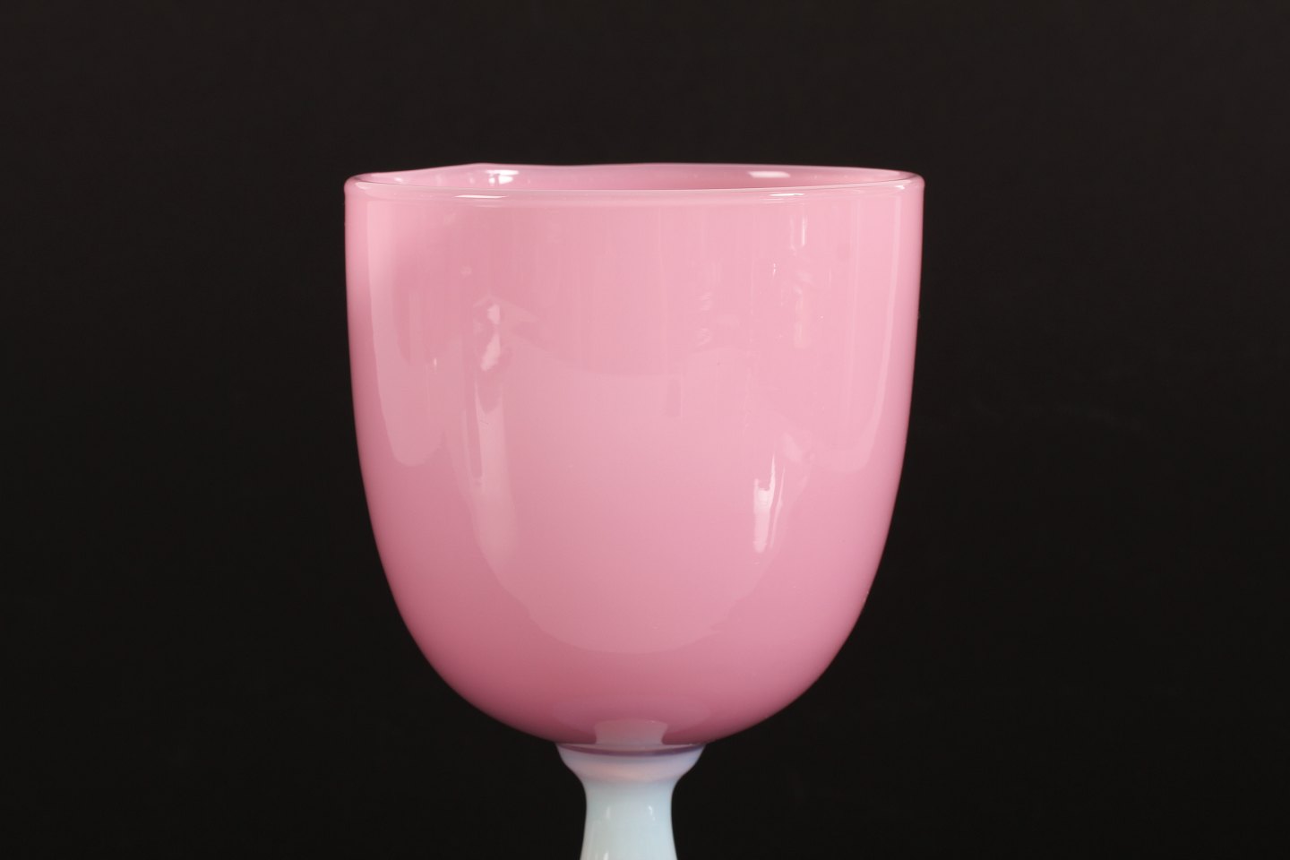Probably Danish glass works Large old glass with rose colored bowl and stem and base of whitish glass Height 19 cm Diameter 1.,5 cm Nice vintage condition without chips or discoloration