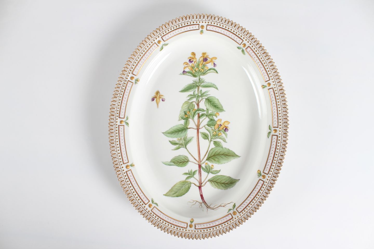Royal Copenhagen Flora Danica Large oblong serving Dish model 3517 with flower decoration"Galeopsis Versicolor Curt." With Stamp from 1946 Length 36 cm Width 29 cm Mint condition 1. quality