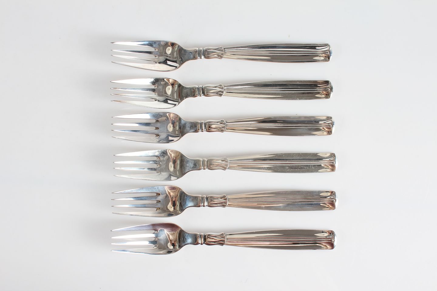 Lotus Sølvbestik Lotus tretårnet sølvbestik fra Horsens Sølvvarefabrik Middagsgafler Længde 19 cm Rigtig fin stand uden monogram