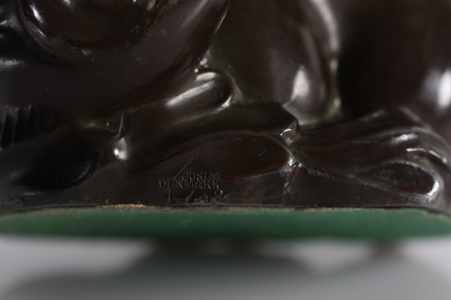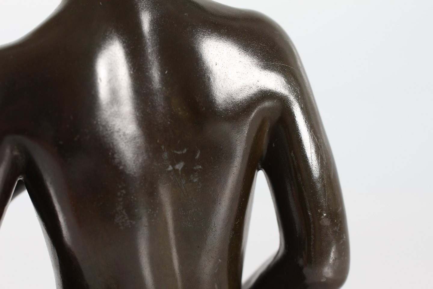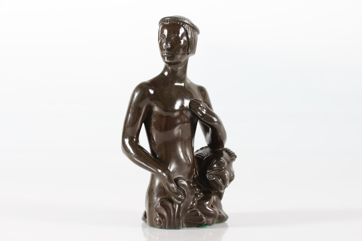 Just Andersen (1884-1943) Ung mand og fisk Dessin nummer 1742 fremstillet af patineret disco metal Højde 22,5 cm Pæn stand med patinering - se billeder af små skrammer