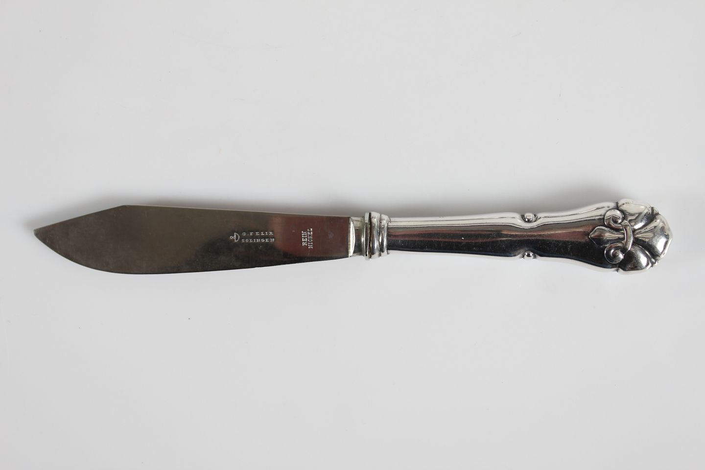 Fransk Lilje Sølvbestik Lille tærtekniv fremstillet af ægte 3 tårnet sølv Længde 21 cm Fin stand uden monogram