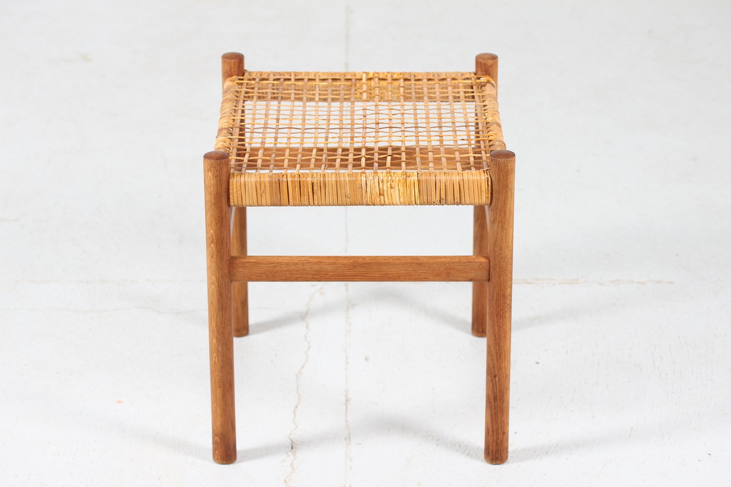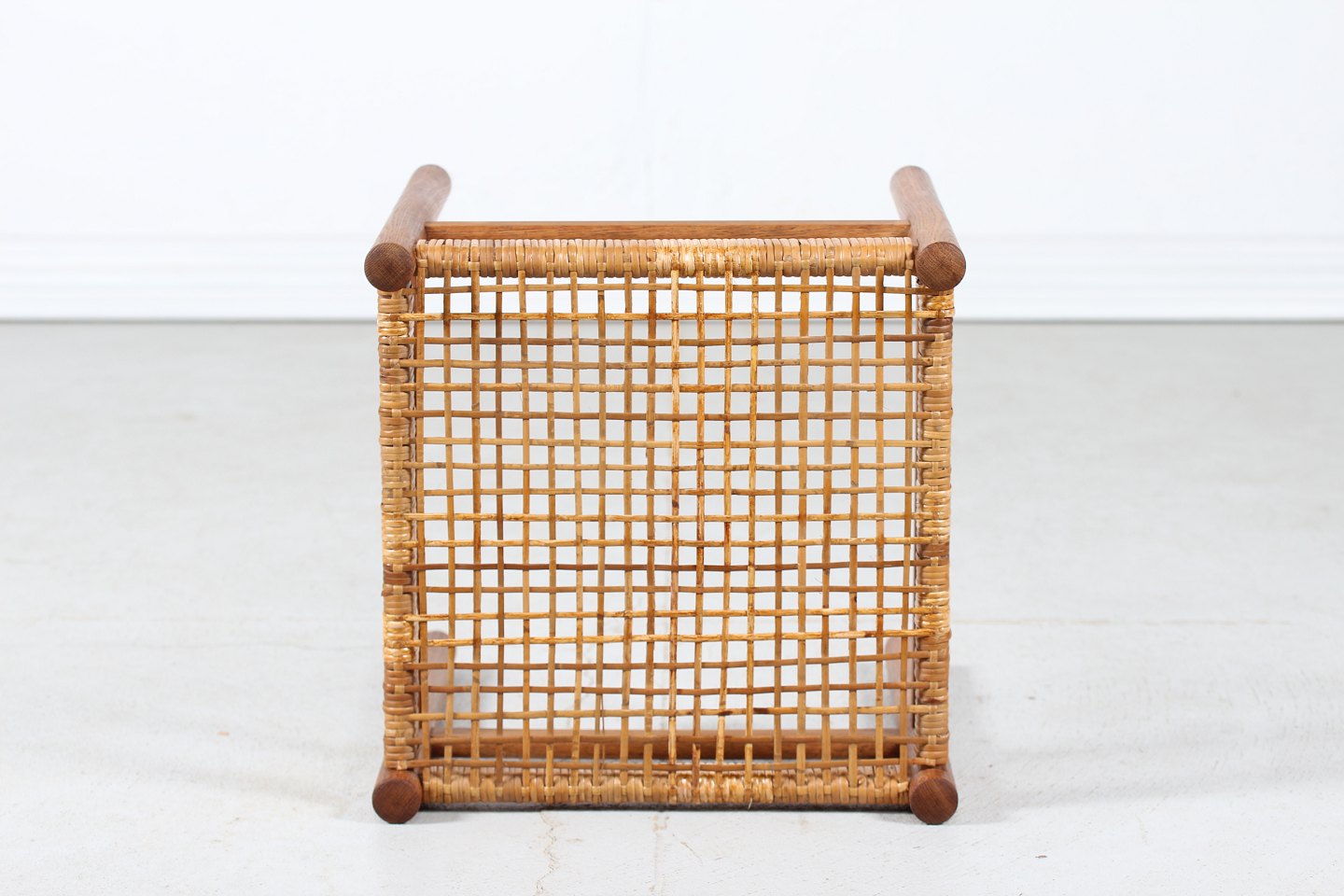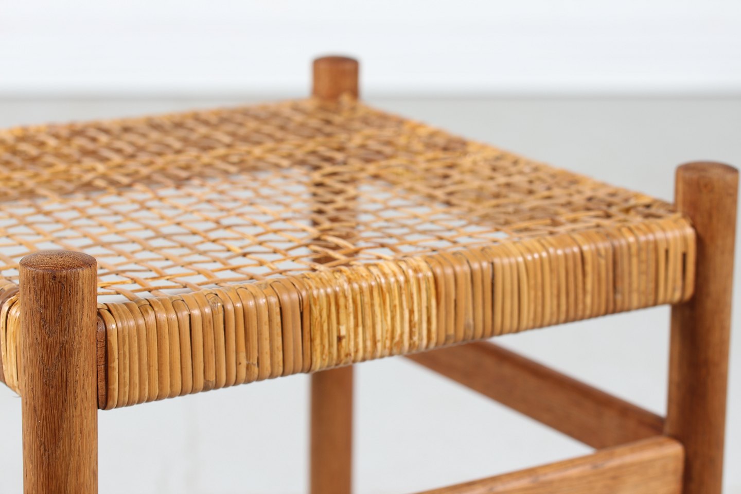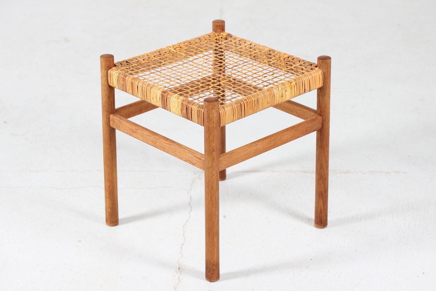 Dansk Møbeldesign Skammel af patineret eg med sjene flet Højde 48 cm Bredde 42 cm Dybde 42 cm Dansk Møbelproducent Fin stand med patina Skamlen kan beses efter aftale