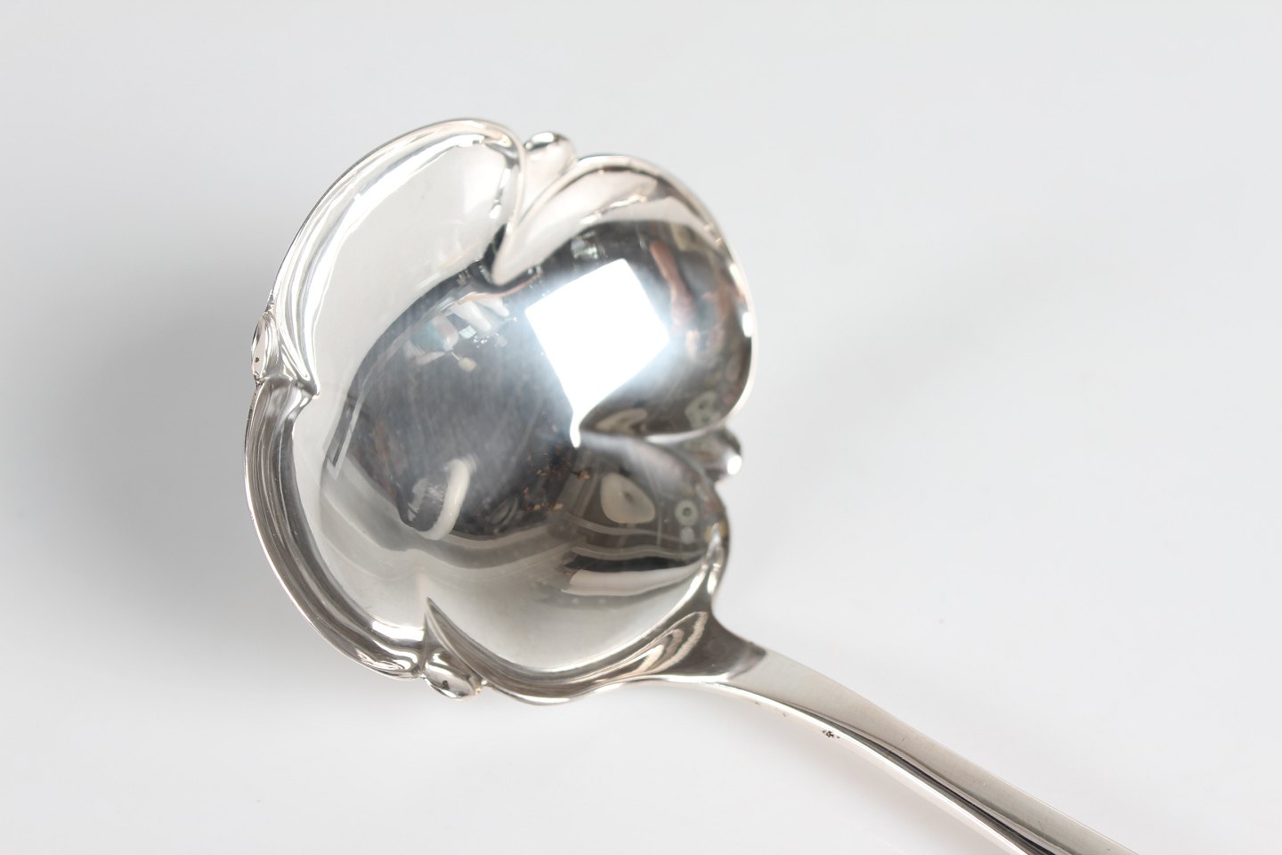 Fransk Lilje Sølvbestik Sjælden og stor sauceske fremstillet af ægte 3 tårnet sølv Længde 22,5 cm Fin stand uden monogram