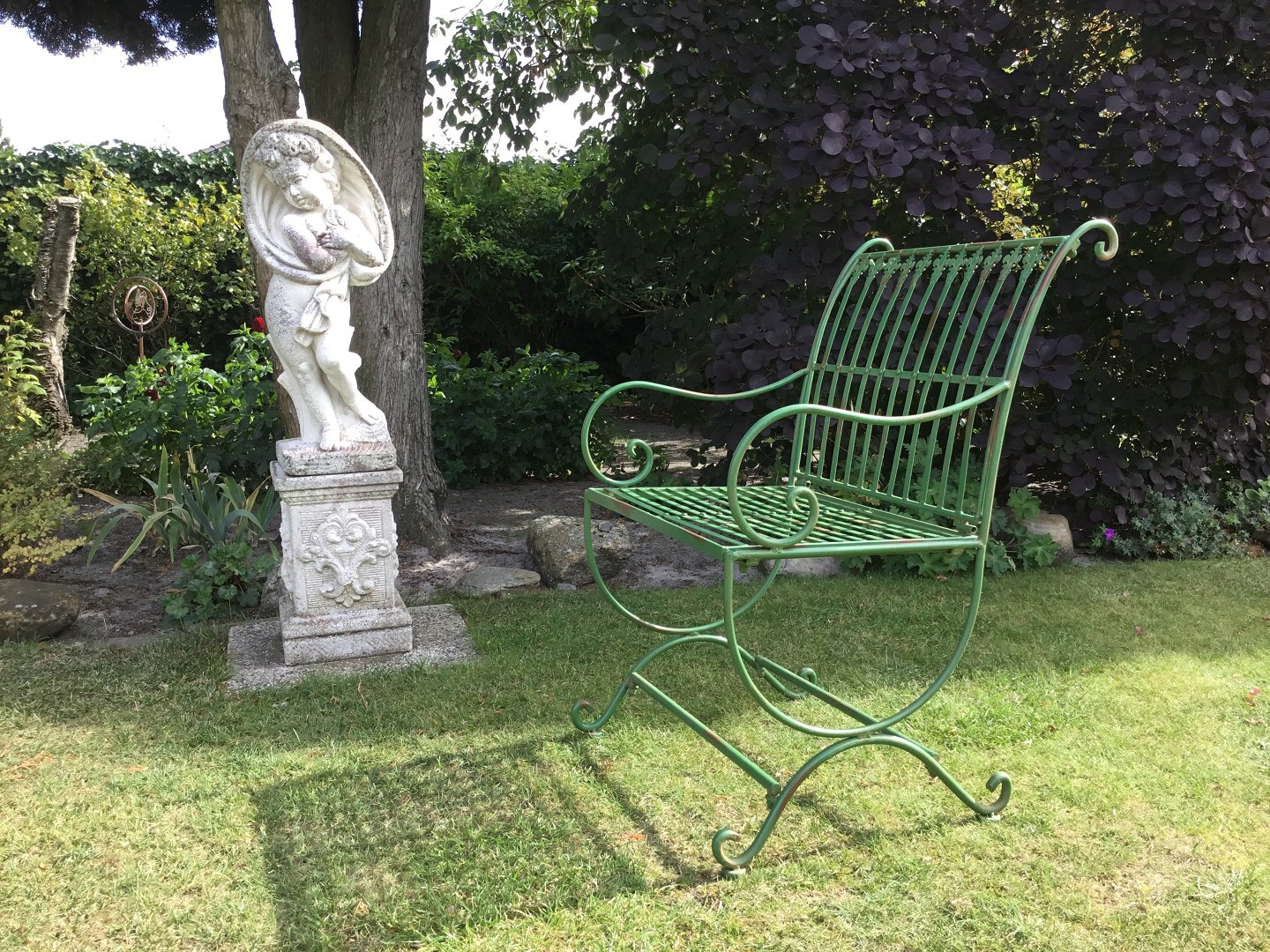 Wrought iron garden chair Garden chair made of handmade wrought iron, green patina painted Length 53 cm Depth 63 cm Height 86 cm Seat height 44 cm New condition with vintage look