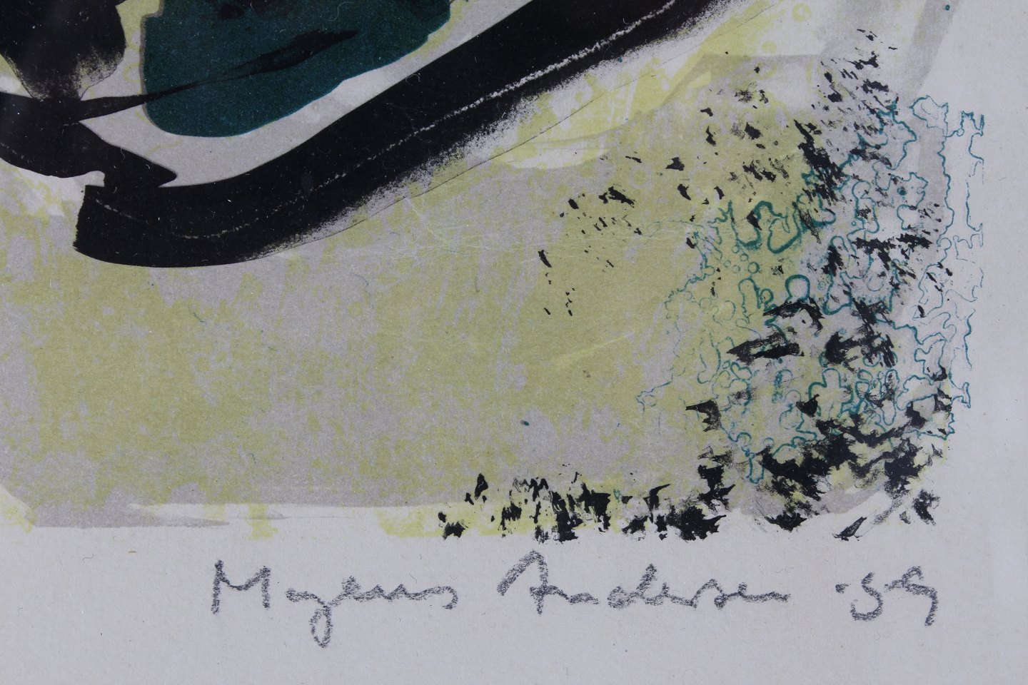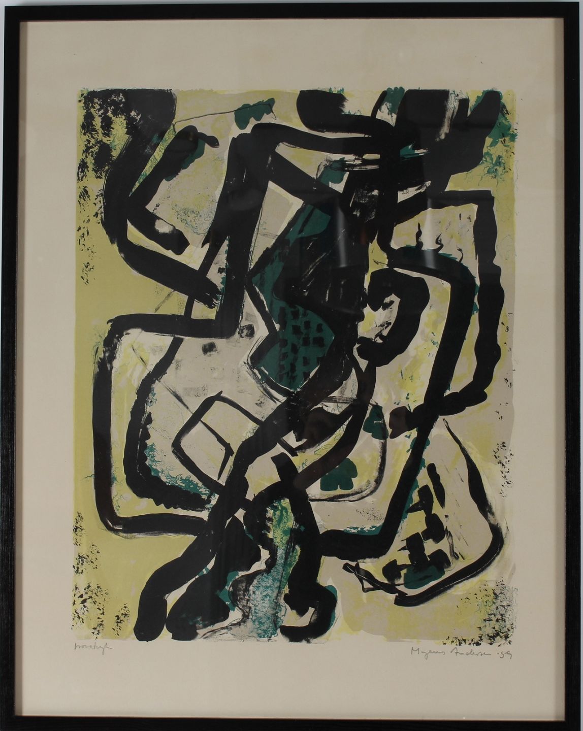 Mogens Andersen (1916-2003) Abstract composition, test print Color lithography in new black wooden frame Sign. Mogens Andersen 59 Height incl. frame 72 cm Width incl. frame 57 cm Nice vintage condition
