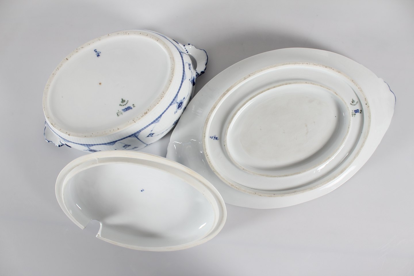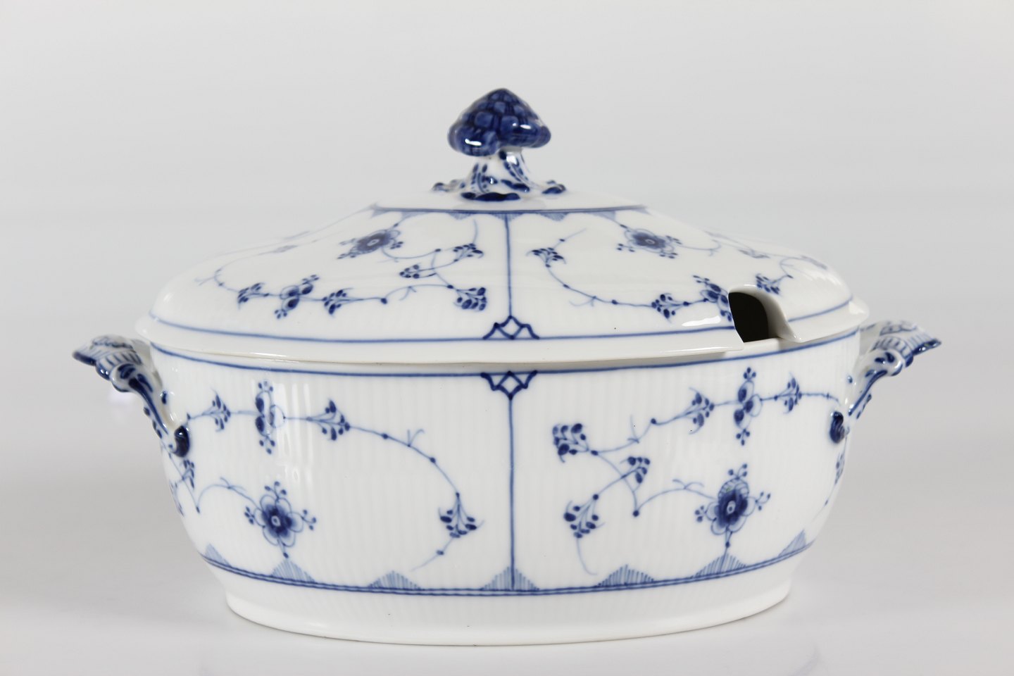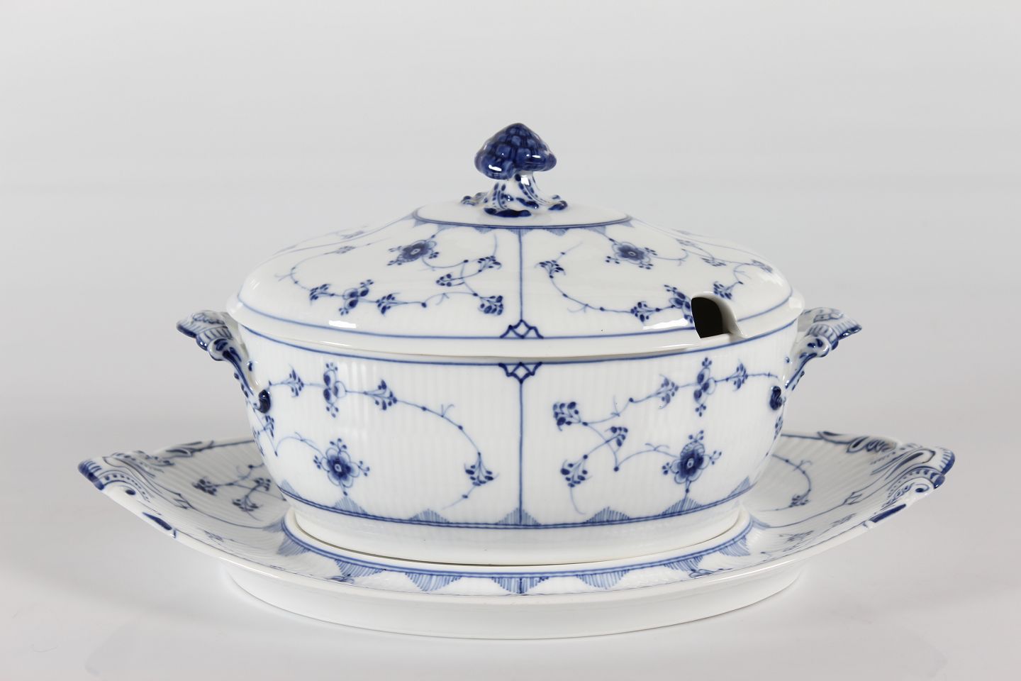 Royal Copenhagen Blue Fluted Plain Old tureen with dish model no. 1/214 With stamp from the period 1893-1900 Length 40 cm Height 21 cm 1.quality - mint condition