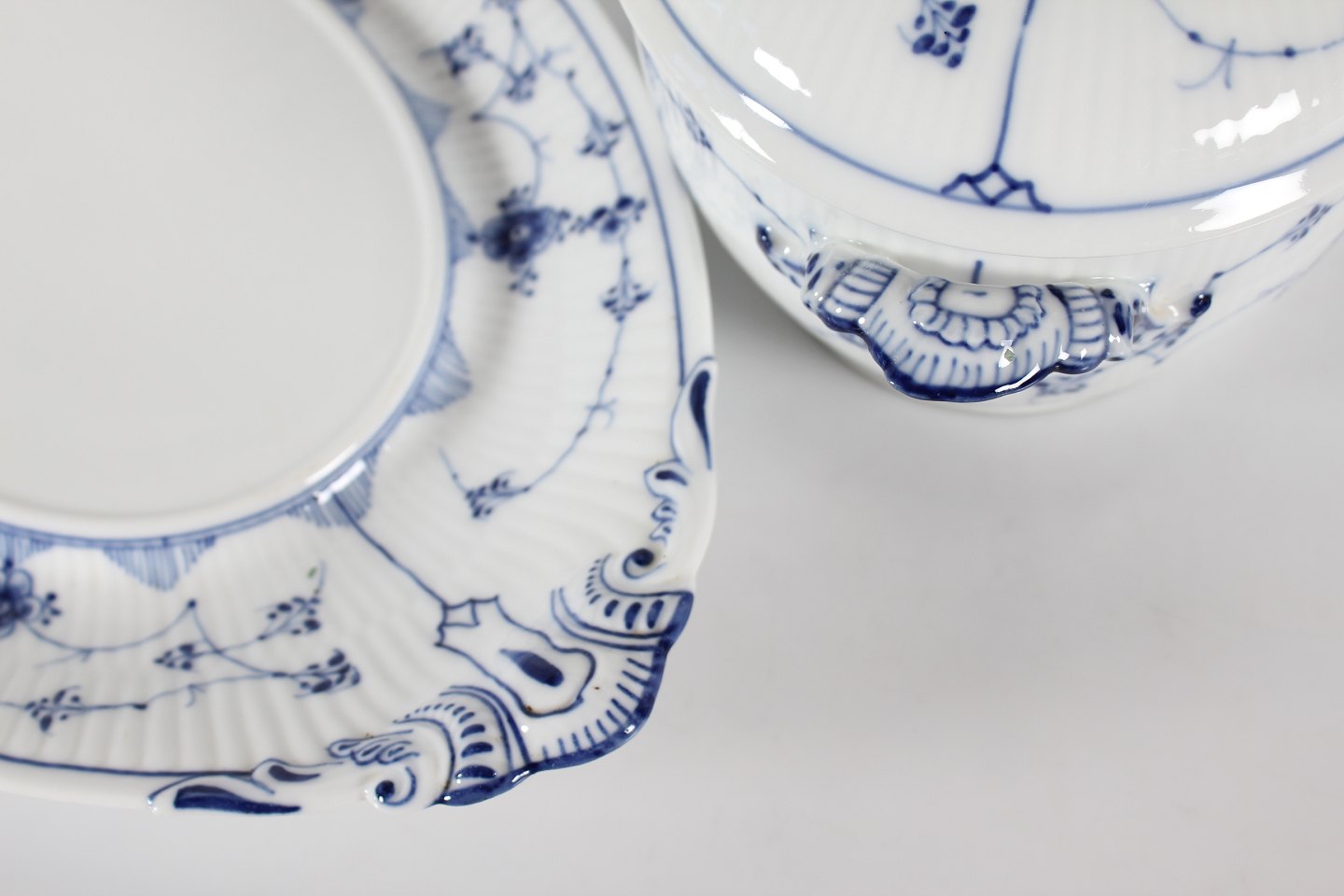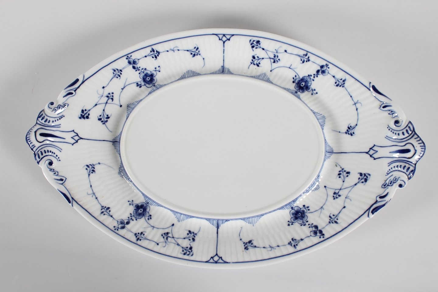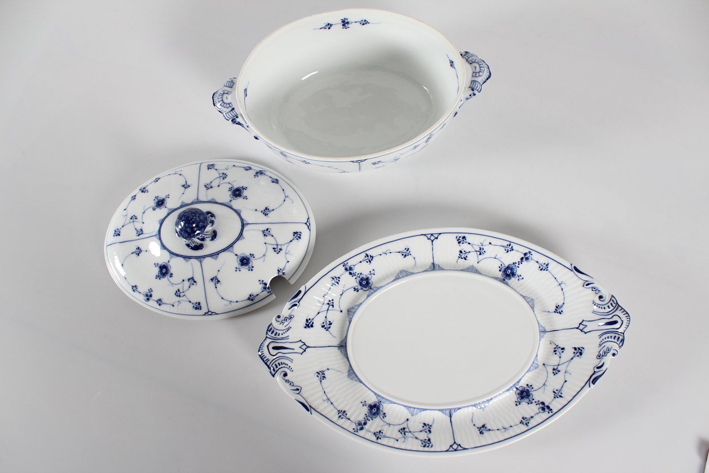 Royal Copenhagen Blue Fluted Plain Old tureen with dish model no. 1/214 With stamp from the period 1893-1900 Length 40 cm Height 21 cm 1.quality - mint condition