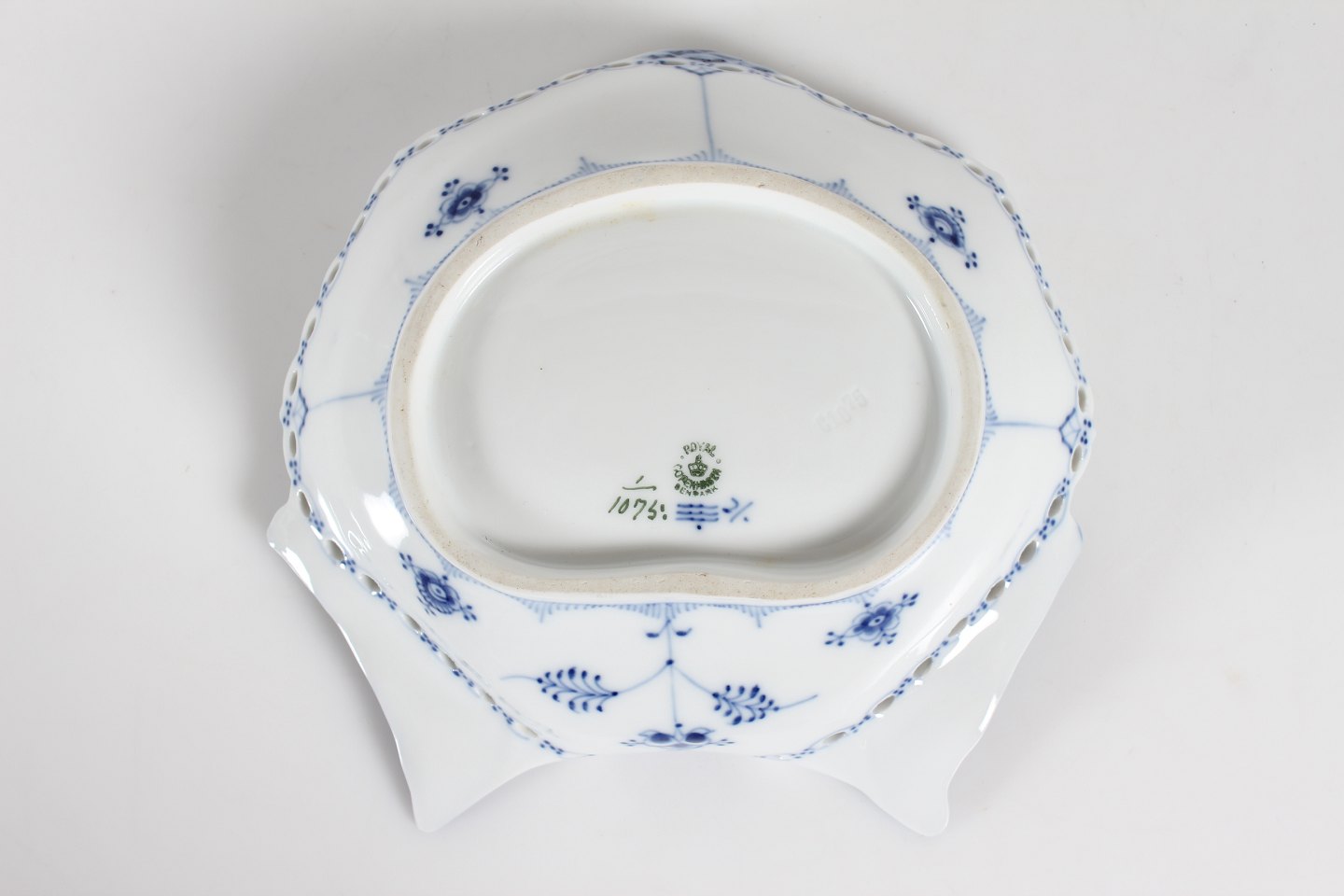 Royal Copenhagen Musselmalet Helblonde Muslingformet skål 1/1075 Længde 19 cm Bredde 19 cm Højde 4-6 cm 1. sortering - fejlfri stand uden afslag - se billede af lille brændingsfejl