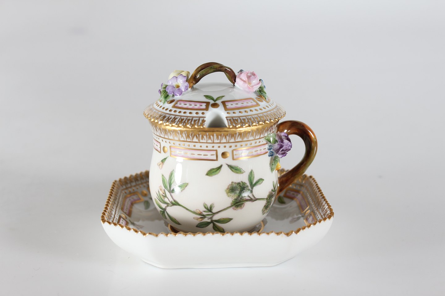 Royal Copenhagen Flora Danica Mustard and creme jar on square plate no. 20/3589 + 20/3515 With stamp from the period 1963-84 Height jar 8 cm Diameter jar 6.5 cm Measures plate 10 x 10 cm Mint condition - factory 1