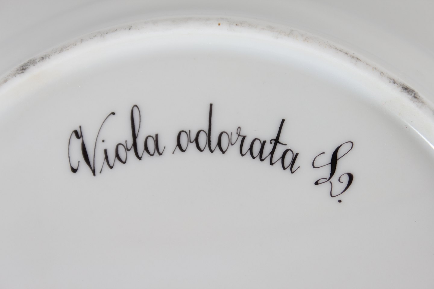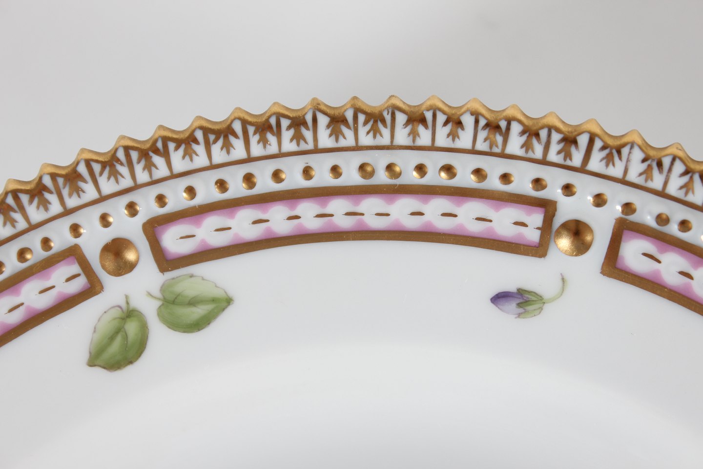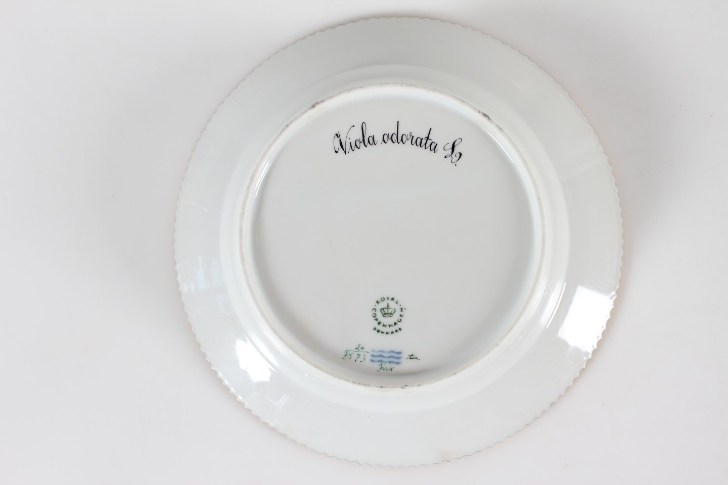 Royal Copenhagen Flora Danica Tallerken med takket guld kant model nr. 20/3573 Dekoreret med blomst "Viola odorata L." Med stempel fra perioden 1980-84 Diameter 19 cm Fin fejlfri 1. sortering