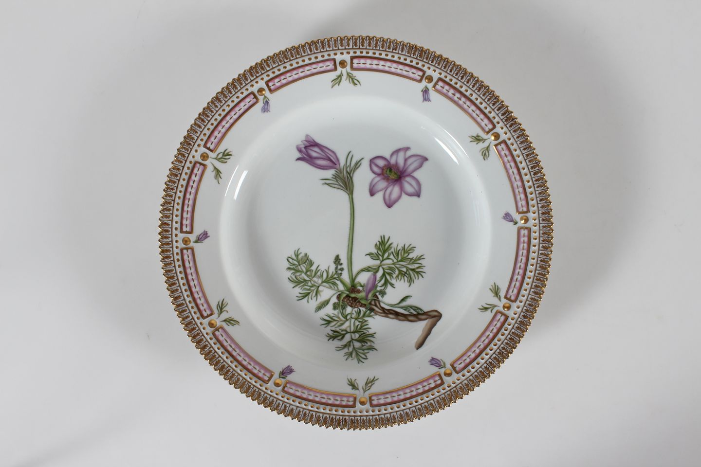 Royal Copenhagen Flora Danica Dinner plate with no. 20/3553 with serrated golden rim Decorated with flower "Anemone pulsatilla L." With stamp from the period 1975-79 Diameter 25 cm Factory 1 without chips or cracks